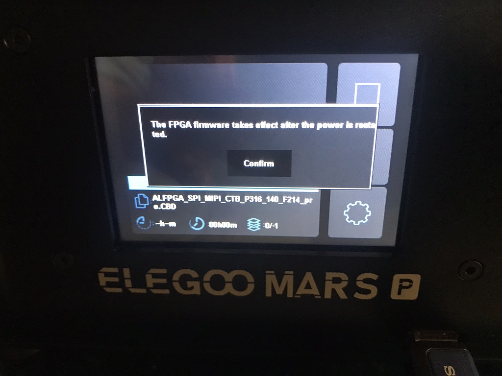 しばらくすると下記画面になる「Confirm」を押すと書き込み完了