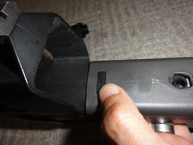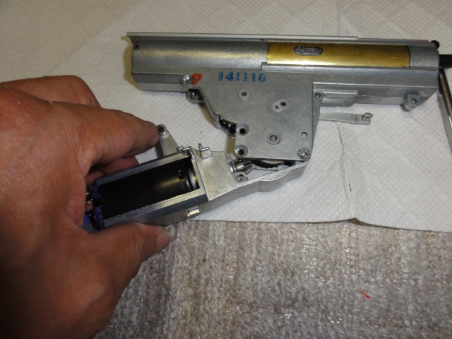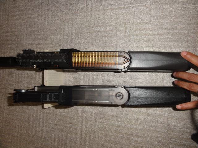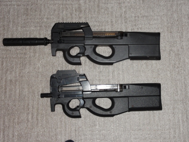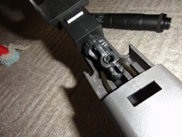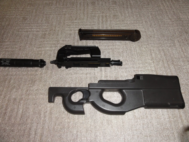 201105/30 さて、整備しますか・・・ エアーソフトガン 0 もともと持っていたトイテックP90EGと今回某オクで入手のジャンクP90 微妙にグリップ周り、ストック付近の幅が異なります。 P90EGは、倉庫にお休みいただき、マルイのP90を整備します。 テイクダウンボタンを押し、引き揚げるように前に抜けば・・・・ チャンバーを含みすべてが引き抜けます。 後はストックからメカ部分を抜き取ります 後は、ギヤーボックスを分解して、ギヤーの状態を点検 グリスを新しくして、組み直します。 バレルを抜き、チャンバー部分の掃除、ホップアップ周りの確認 これで組上げます。 後は弾速計にて、測定して基準以内か確認です。 [0回]
