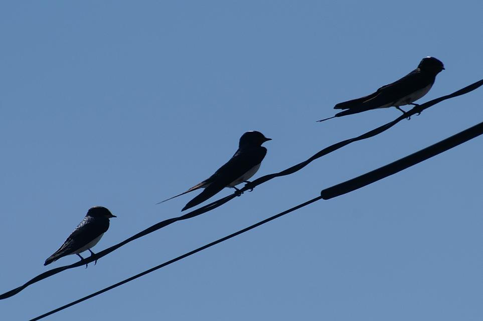たくさんのツバメたちが来て、引込み線で休みます。