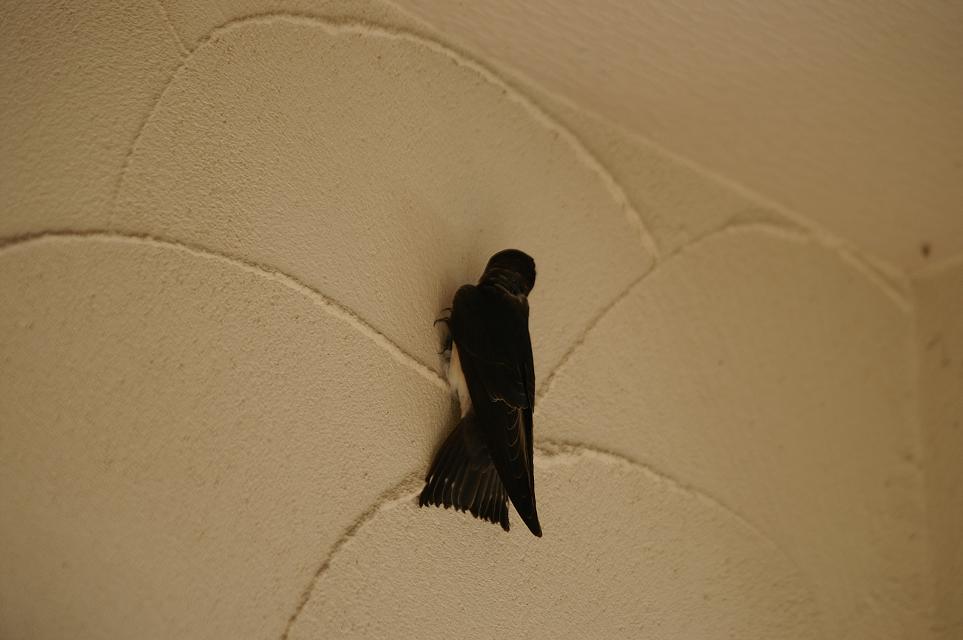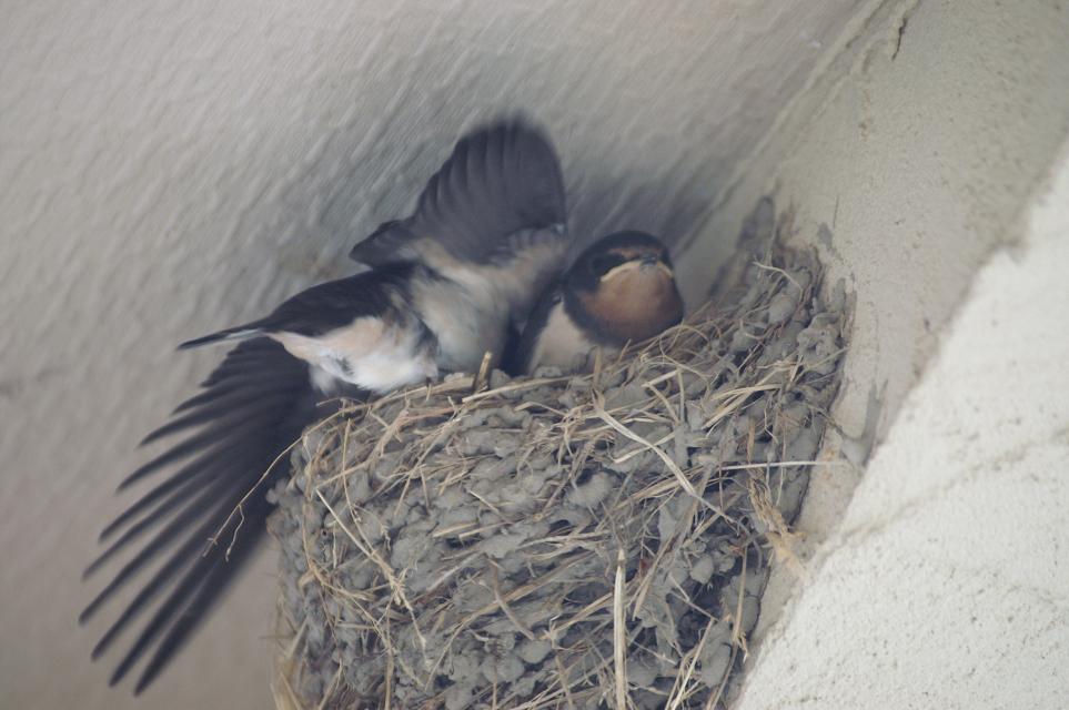 そこから、玄関ポーチの中を代わる代わる飛んで来て、巣の向かい側の壁、玄関止まり誘っているようです。
