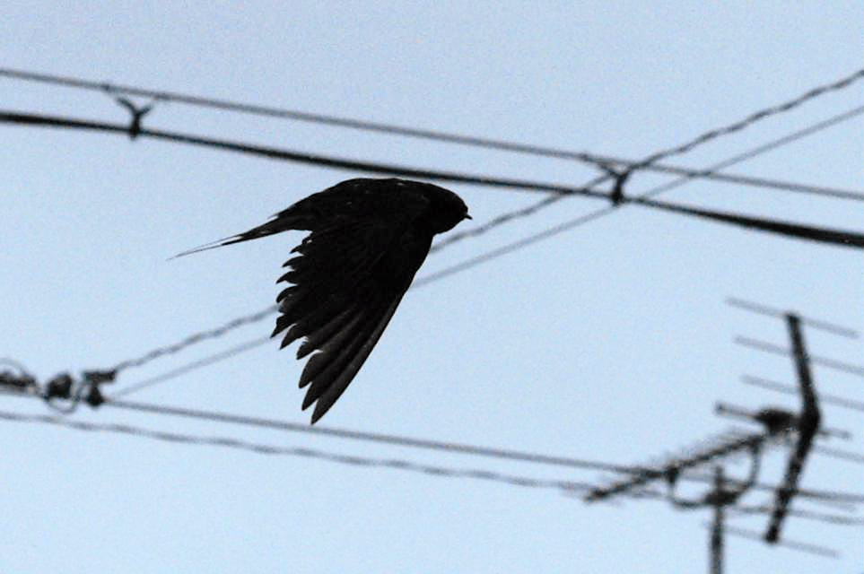 パパツバメでしょうか?戻ってきたら、ついてくるように飛んできました、感じからして雛ですね