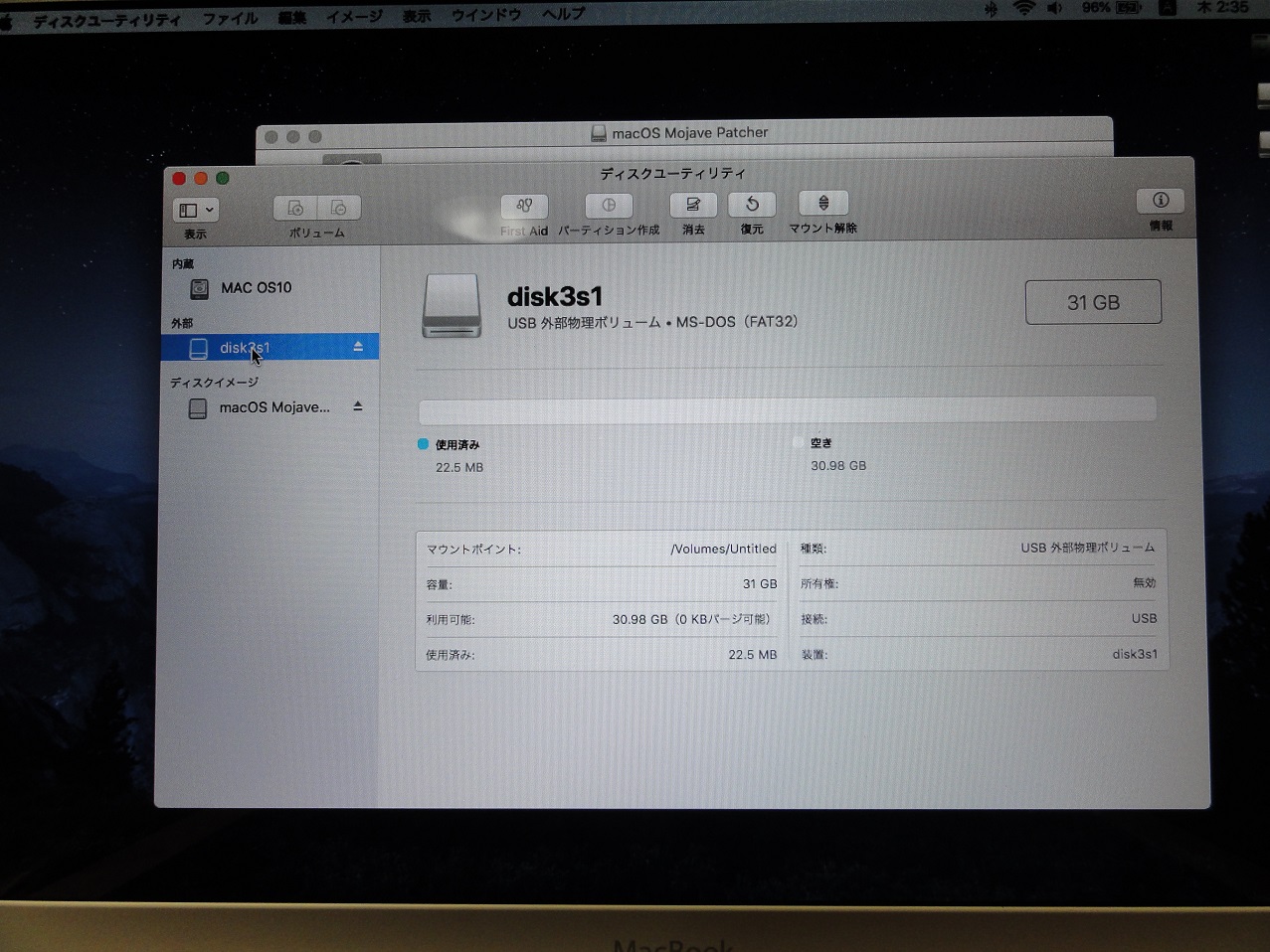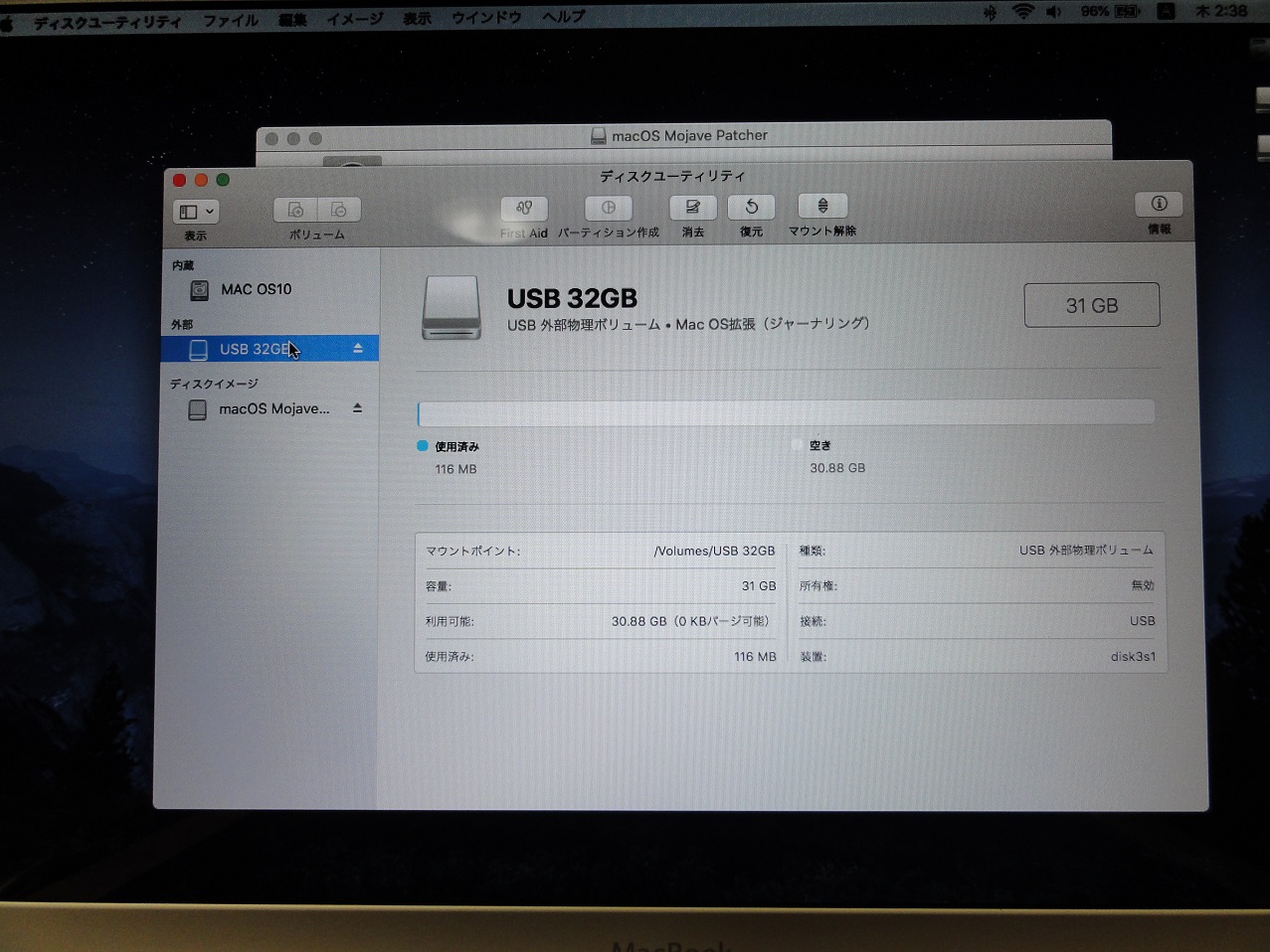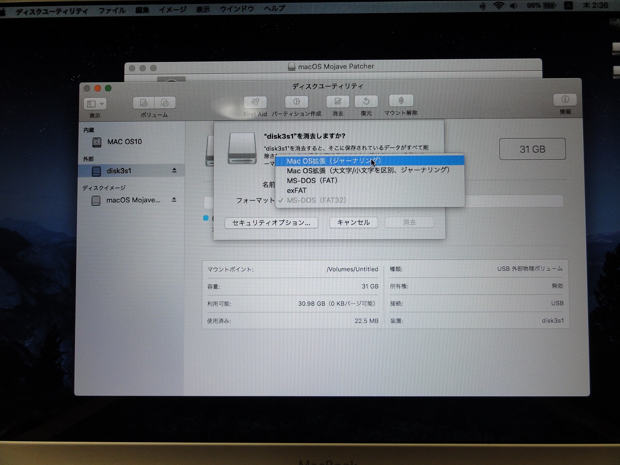 名称未設定はMojave用に空のパーティションを準備