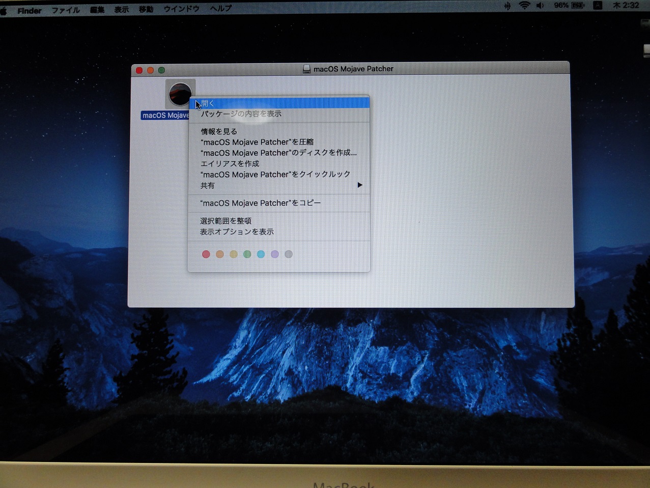 macOS Mojaveがクリックできます