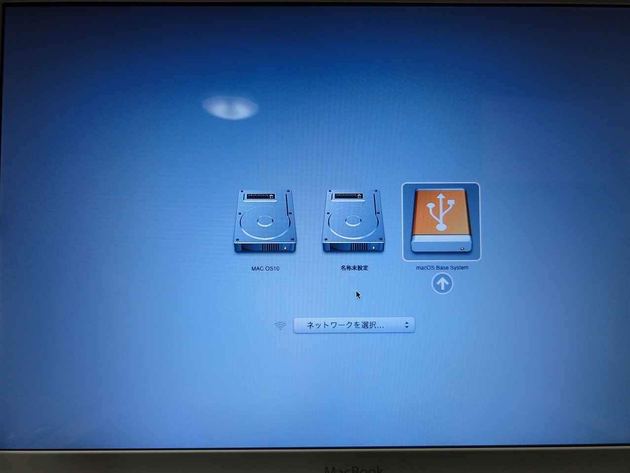 再度電源ボタンを押して直ぐに「option」キーを押し続けて