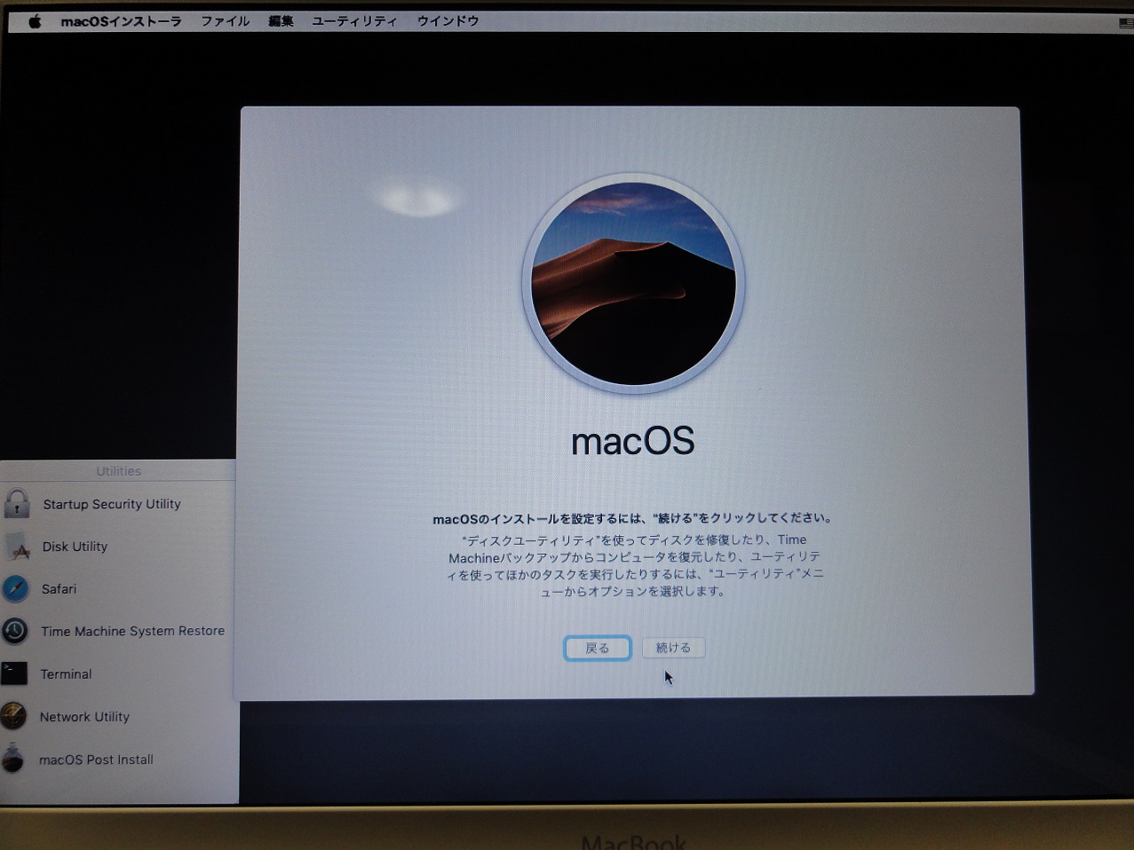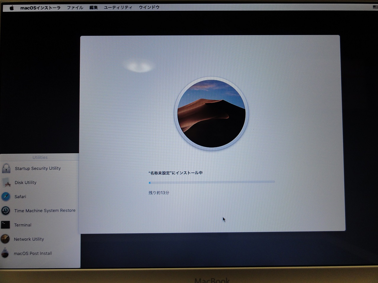 いつの間にかOS起動の画面に切り替わり無事Mojaveが起動しました。