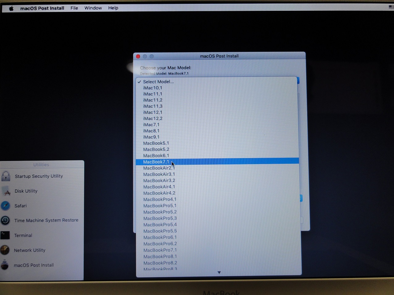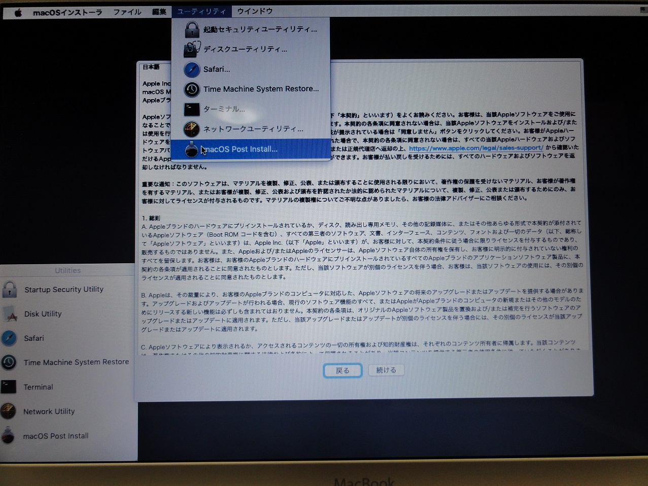 プルダウンメニューから「macOS Post instsll...」をクリック