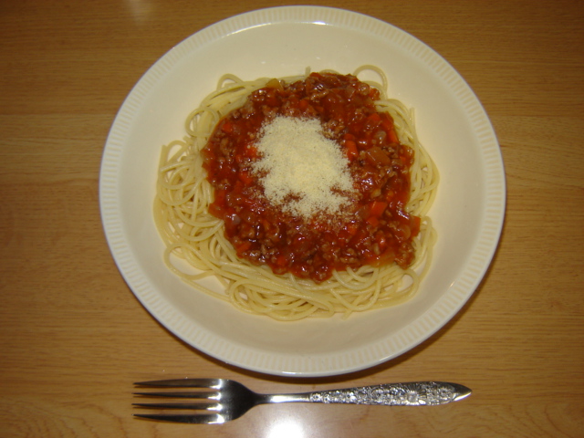自分の好きなスパゲティー(ミートソース)・・・本当はたらこが大好き